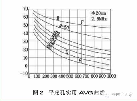 綜上所述,實(shí)用AVG曲線記錄了某個(gè)特定探頭針對(duì)不同大小規(guī)則反射體在不同深度的曲線,如:對(duì)某一個(gè)探頭,其實(shí)用AVG曲線包含了各個(gè)尺寸的DAC曲線,如其中包含了2平底孔在不同深度DAC曲線,也包含了3、4等平底孔在不同深度的曲線(見圖2),換句話說,DAC曲線是實(shí)用AVG曲線的特征。